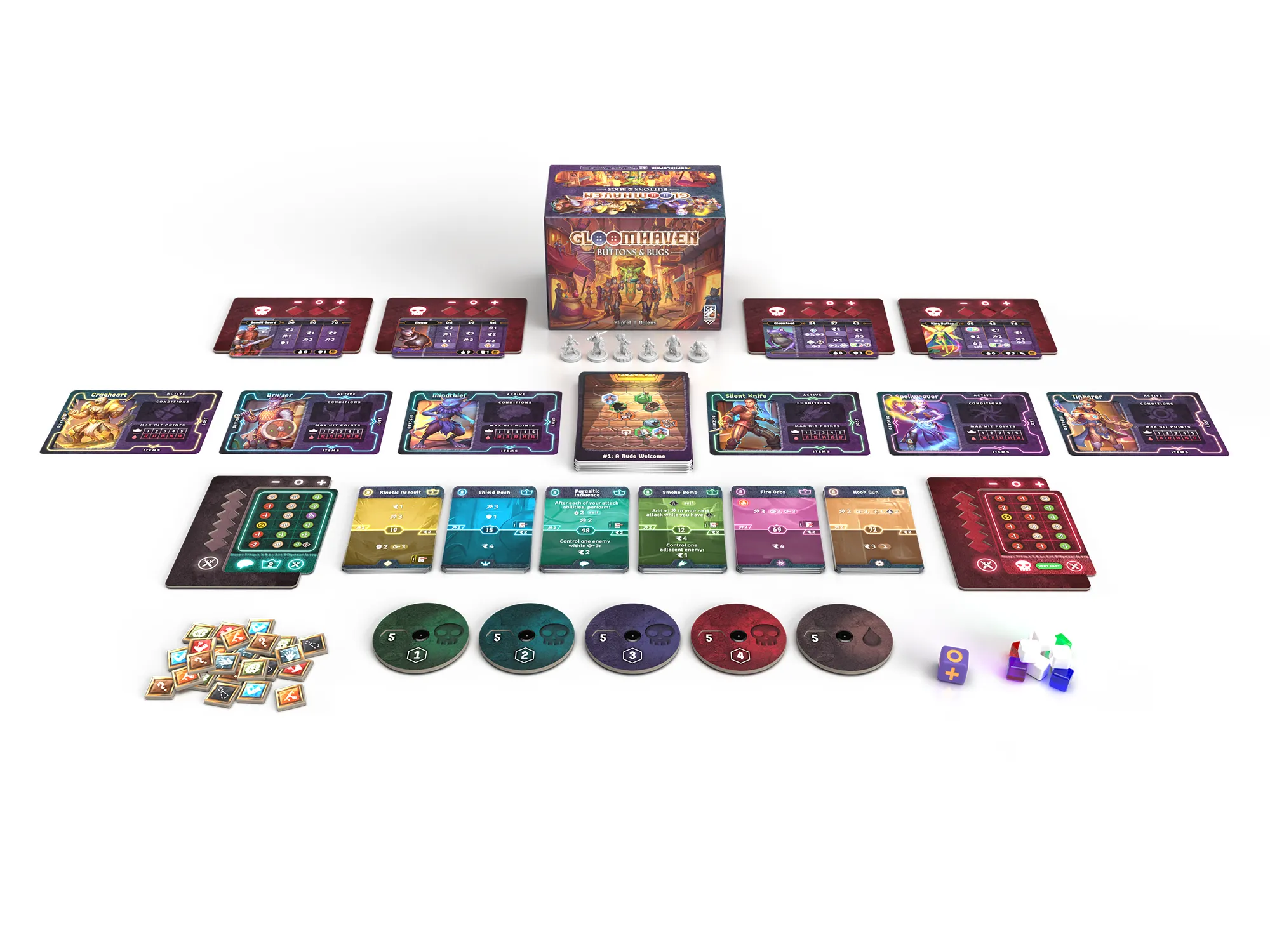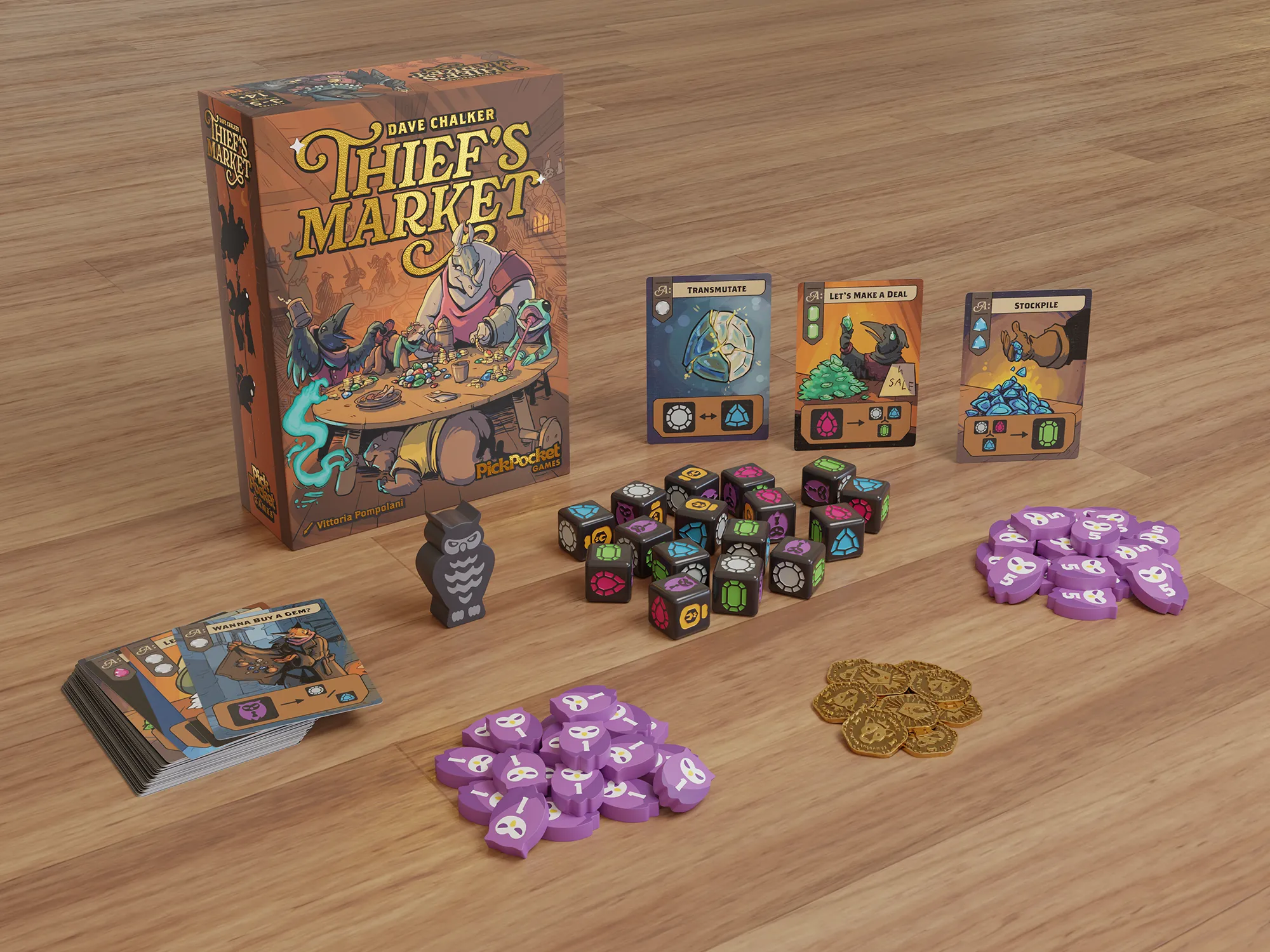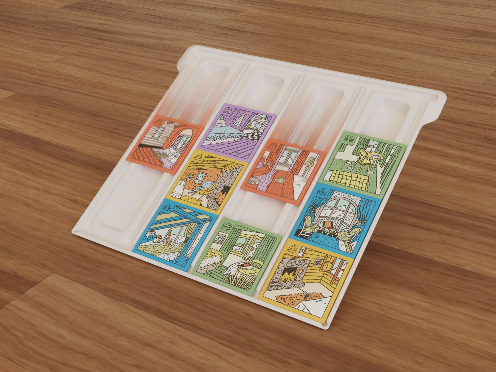 These are our “in play” photos, perfect for Kickstarter, social media, and your website to give folks a feel of what the game looks like at your table. Typically rendered in a very simple fashion.